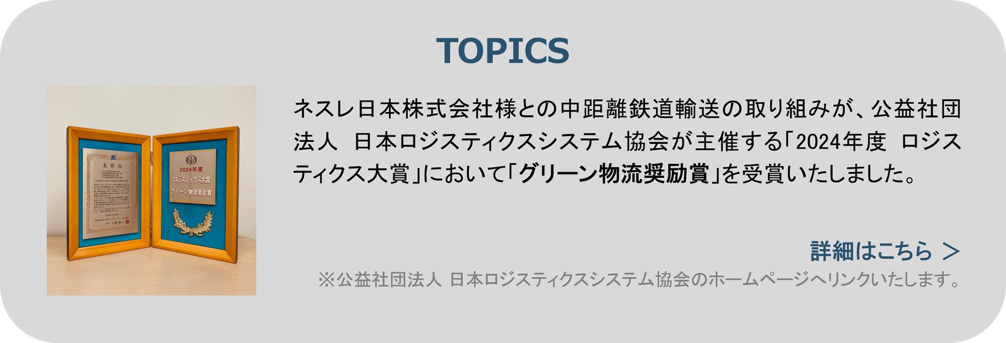 弊社は2025年4月1日付で社名を「JR貨物ロジ・ソリューションズ株式会社」に変更いたしました(旧・日本運輸倉庫株式会社)。